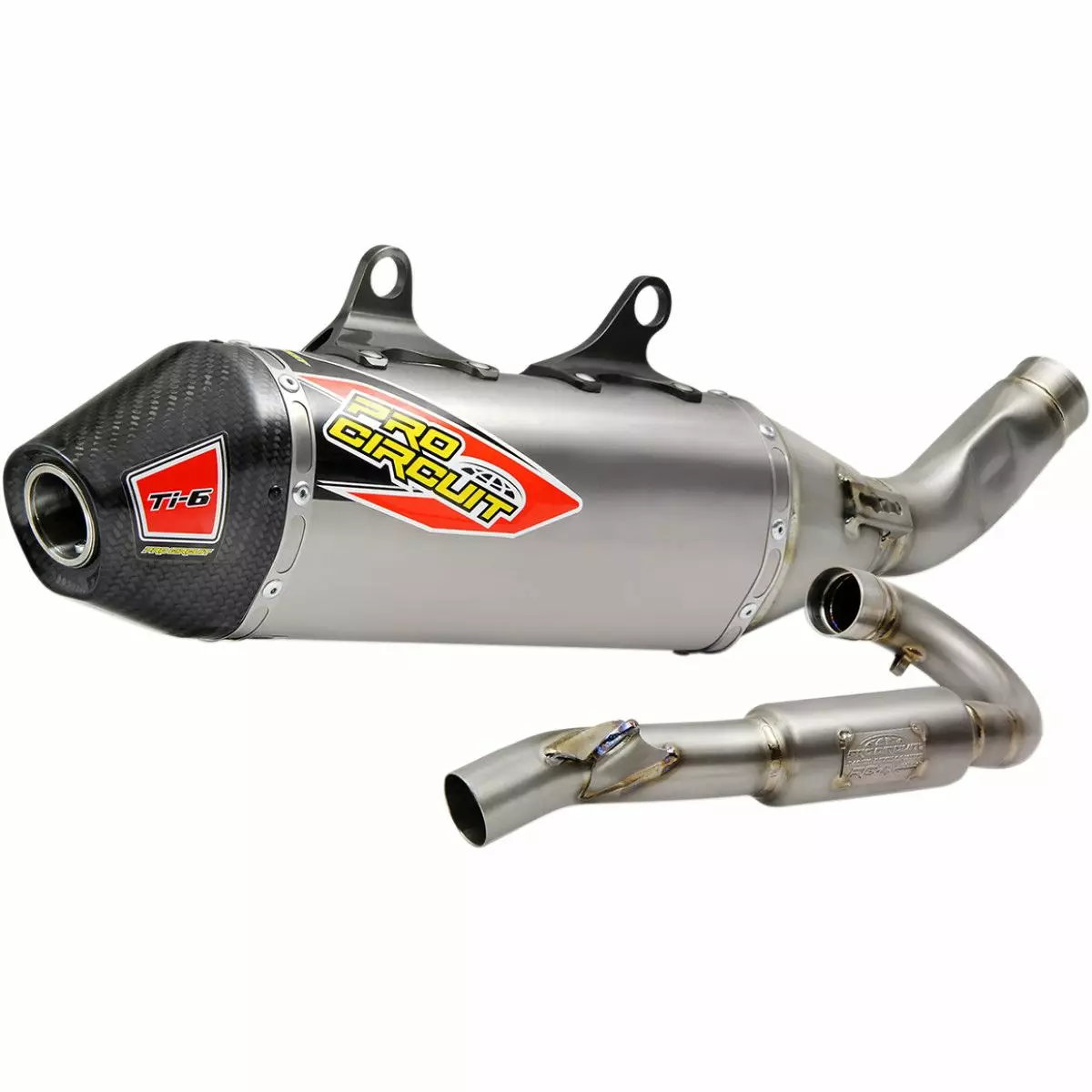 The Ti-6 Titanium Exhaust System is designed to improve performance and is constructed of titanium throughout the head pipe, mid pipe, and canister while the end-cap is constructed of carbon fiber. The Ti-6 is ideal for any closed-course or off-road racer looking for improved performance, durability and a professional look. Although the Ti-6 will not pass FIM sound requirements seen in professional racing here in the states or in Europe, the Ti-6 will meet AMA amateur noise requirements, and comes equipped with a removable USFS approved spark arrestor making it easy for riders to alternate between off-road and closed-course racing.